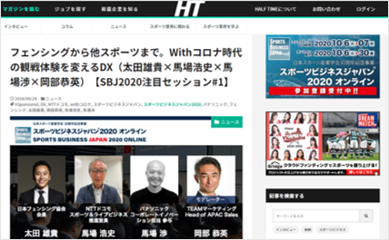 2020.09.24HALF TIMEにてSBJ2020注目セッションを紹介中【#1】フェンシングから他スポーツまで。Withコロナ時代の観戦体験を変えるDX(太田雄貴×馬場浩史×馬場渉×岡部恭英)